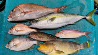 釣果は、無事、鯛GET! 外にもメイチダイ、オオモンハタ、シオなど釣れました。