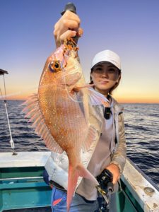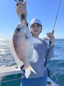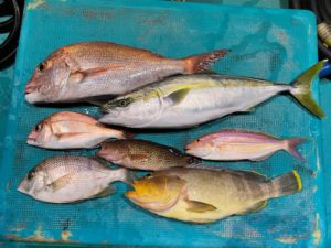 2022/10/20の釣果 フィッシング Twitter Facebook はてブ Pocket LINE コピー 2022.10.20 本日、和歌山印南へタイラバに出かけました、潮と風が向き合っていて仕掛けが流れず激渋でしたが、船長さんが繰り返しポイント移動して頂いて、メイチダイ、メジロ、イトヨリ、真鯛、オオモンハタをGETで竿頭!!、何とか魚種豊富な結果になりました^_^ メジロはロッドを持つ手が壊れそうでした。 後半、同行者も59cm真鯛、デカアオハタGET!でした。 コメント
